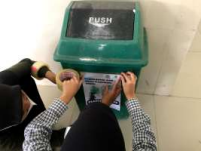 Penempatan dan penyebaran tempat sampah khusus plastik merupakan sebuah upaya dalam mengurangi sampah plastik kampus PPG UIN Jakarta. Sampah plastik yang terkumpul di tempat sampah khusus plastik bank sampah dapat diambil dan diolah menjadi bahan daur ulang dengan lebih mudah dan efektif. Kegiatan ini dimulai dari mempersiapkan survei jumlah tempat sampah yang ada di kampus dan menyiapkan label yang akan ditempelkan di tempat sampah khusus plastik berwarna hijau. Label yang ditempel berisi informasi tentang jenis sampah plastik yang dapat dimasukkan ke dalam tempat sampah tersebut.